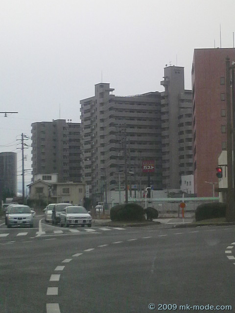 松江のR9袖師交差点北側(県立美術館前)から南方を見た景色です。 (車のフロントガラス越しですが)