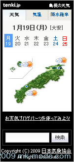 さっきからこちらのサイト(ブログパーツ.com)を見ていたら、天気予報も気に入ったのがあったので(人気ランキングも1位だし)、これに変えてみました。