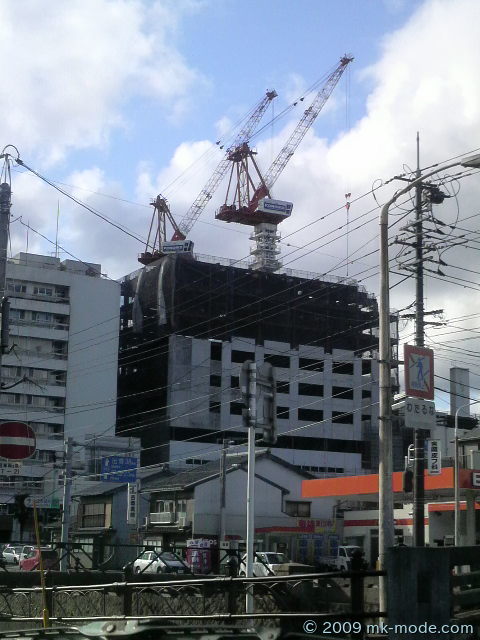 もうチョットしたら、 12階からヘリポートまでの鉄骨を組むために クレーンがもっと高くなるようだ。