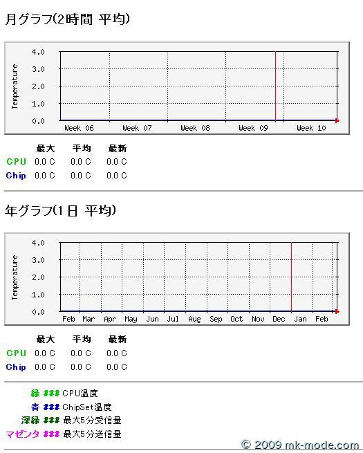 元々あるMRTGの各種グラフが統合された画面に「 CPU・チップセット温度 」も同じように統合するには、以下のようにする。 ・MRTGインデックスページ作成