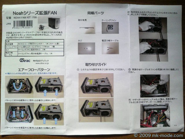 当方は横置きで使用したいので、「 Noah Fan Kit 1700 」の説明書にあるように、標準のファンを増設ファンと同様に外気を取り込むように付け替えました。