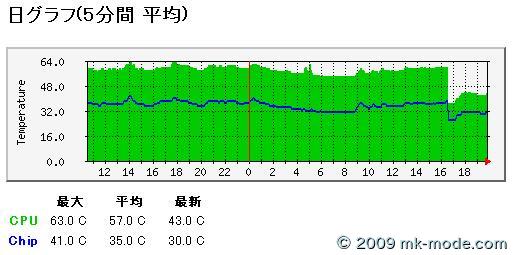 CPUが43~44度、チップセットが30~31度あたりで安定しそうな感じです。