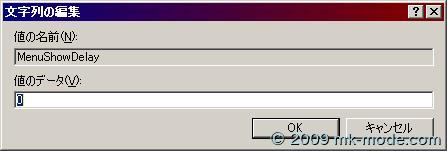 「 編集 」メニューの「 修正 」をクリックします。 もしくは「 MenuShowDelay 」右クリックで「 修正 」をクリックする。