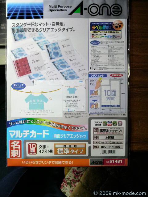「 A−one 」さんの用紙は意外とあちこちに売れていましたんで、「 A−one 」さんの用紙に「 A−one 」さんのラベル作成ソフト「 ラベル屋さんHOME 」を使用して名刺を作成することにしました。