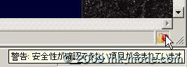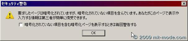 チョット調べてみると、リンク先として “http://・・・” みたいなものがあると、そんな警告が出るみたい。。。 詳細は未確認ですが・・・ ま、たしかに、”https://・・・” のページなのに、”http://・・・” があれば、警告になるのかな、と思ったところ。