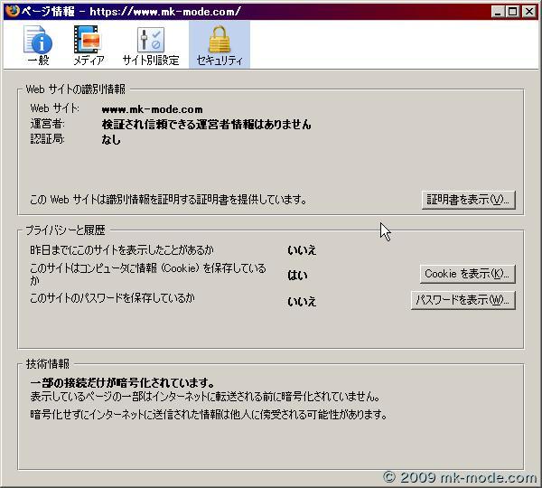 同様に自分のこのブログサイト mk-mode BLOG [ http://www.mk-mode.com/wordpress/ ] も [ https://www.mk-mode.com/wordpress/ ] に接続してみたところ、同様な一部暗号化されないコンテンツがあるという警告が出ました。