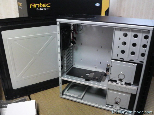 なんか、キレイというか機能的っぽい? 実際にこのケースに自作してみて、このケースの真の実力が明らかになるとは思いますが、いろんな記事を見てみた限り、エアフローも考えてあるし、マザーボードの裏側に配線を通せるし、電源部分が別に仕切ってあるんで電源の放熱がケース内に充満しないようになっているし。。。