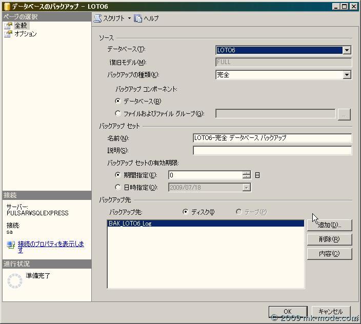 4.あとは、ほとんどデフォルトのままで、「 OK 」クリック。バックアップが正常に終了するはずです。
