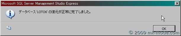 6.「 OK 」ボタン押下で復元され、正常に終了はずです。