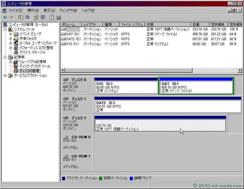 先日、余ったマシンをFreeNASサーバにしたのですが、訳あってハードディスクを別のものと交換しました。 そして、FreeNASで使用していたハードディスクをUSB接続用のケースに入れてWindowsXPで使用しようと思い、フォーマットしようとするとそのディスクは操作できないではありませんか?! ※GPT保護パーティションになっていました。