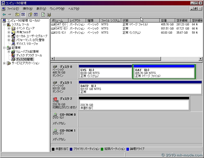これで、このハードディスクが操作(フォーマット)できるようになりました。