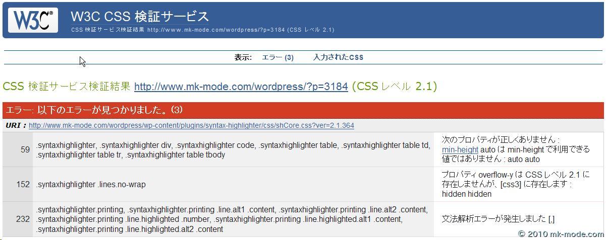 WordPress - W3C(CSS)がSyntaxHighlighterでエラー!