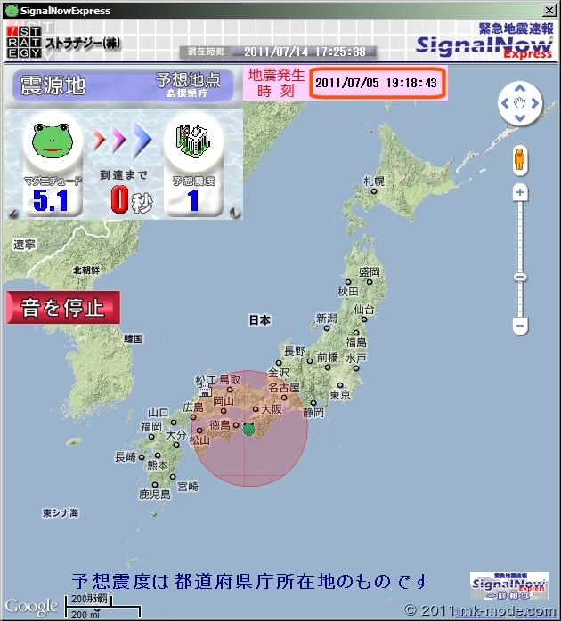 SignalNow Express(緊急地震速報)が的中した瞬間!