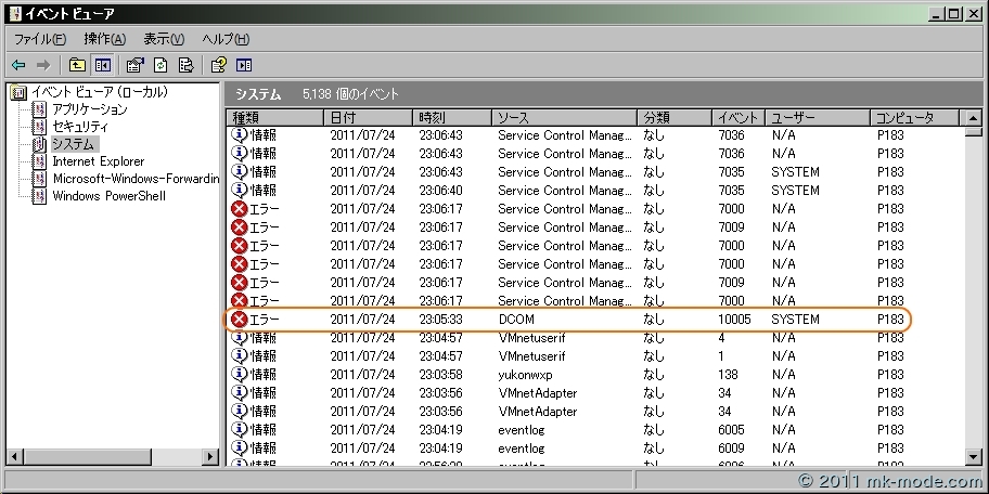 WindowsXP - DCOM システムエラー!