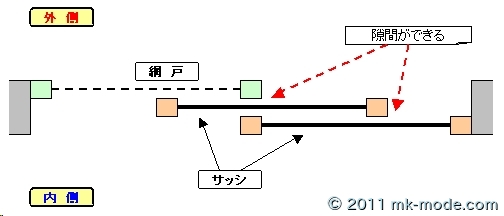 しかし、網戸にしているにもかかわらず、外から蚊が入ってきて困ることはありませんか? 網戸の位置を確認してみてください。 網戸の位置が左右逆になってはいませんか?