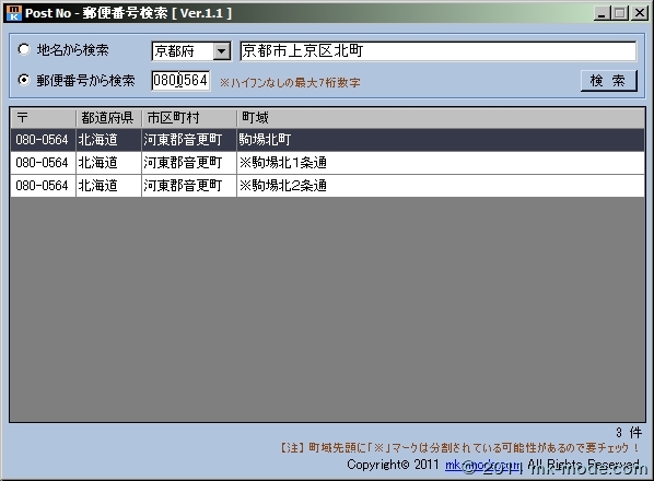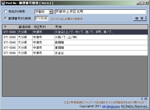 - 「一つの郵便番号で二以上の町域を表す場合の表示」が「0」(非該当)で「郵便番号」が連続して重複しているもの。 無条件に結合して1件のデータとして扱えるようになりました。
