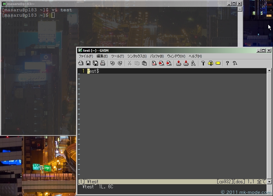 Windows 用 GUI 版 Vim の gVim 起動用のシェルスクリプトを以下のように作成します。 【ファイル名:/bin/vi】