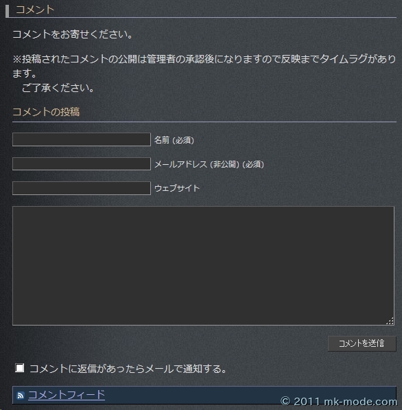 そう言えば、コメントを頂いて管理者である私が返信をした際に、同じページを開いてみない限り相手にはいつ返信があったのか分らないのではないか?と思いました。 実際、自分でコメントしてみて確認してみたところ、返信時にはメールが届きませんでした。 ※本当のところ、コメントに返信した際は自動でコメント投稿者にメール通知するものだと思い込んでいました。
