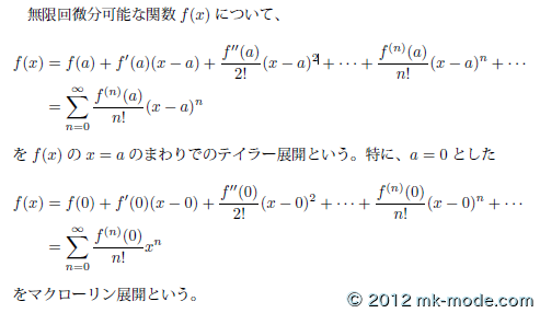 今回は C++ で実現することが目的なので、テイラー展開の詳細についてはここでは説明しません。