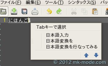 日本語入力時 Mozc が利用できるようになっているか、テキストエディタ等で日本語変換を行なってみる。