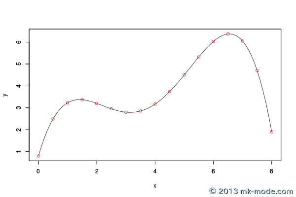 あらかじめ与えられた点以外の点も計算されているのが分かる。