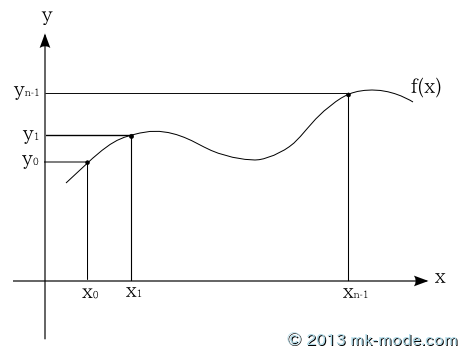 何組かの x, y データが与えられ、これらの点全てを通る補間多項式を求める方法に「ニュートン補間」というものがあります。
