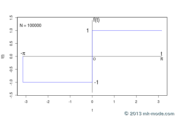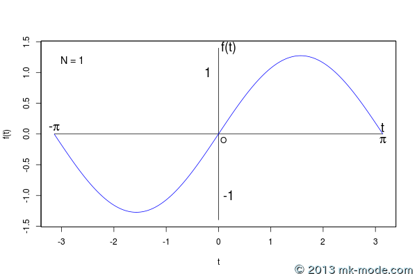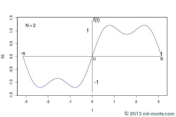 tの範囲は \(- \pi \sim \pi\) に限定している。- 計算項数は