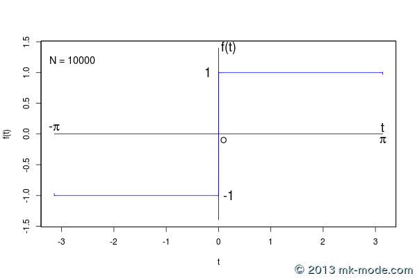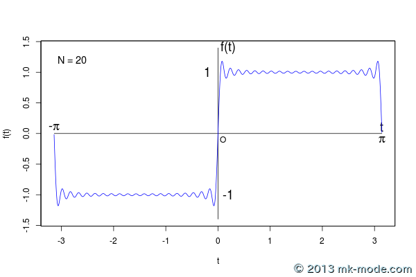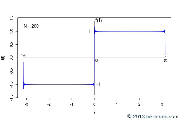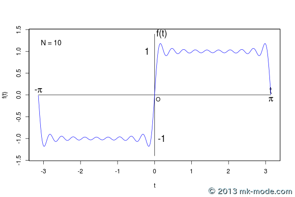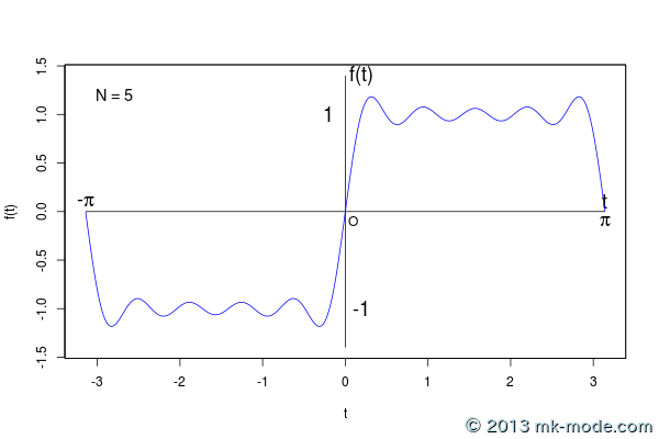 項数を増やすにつれて元の関数のグラフに近付いていくのがよく分かる。