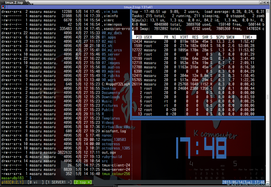 今回、何かと便利そうな仮想端末管理ソフト tmux(Terminal MUltipleXer) を導入してみました。