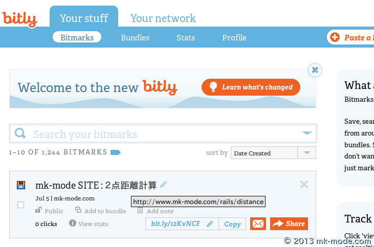 BitLy サイトにログインしてみて、一覧に正しく表示されていることを確認する。