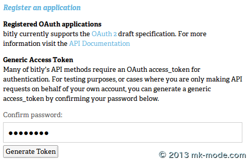 bitly API V3 を使用するには、OAuth 認証が必要です。(一部のリクエストでは API キー認証も使用可)