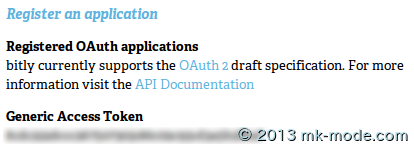 これで、このアクセストークンを使って bitly API で OAuth 認証ができるようになります。