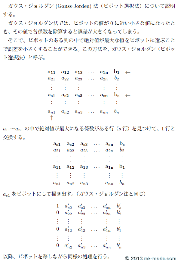 1. ガウス・ジョルダン(ピボット選択)法による連立方程式の解法について(簡単に)