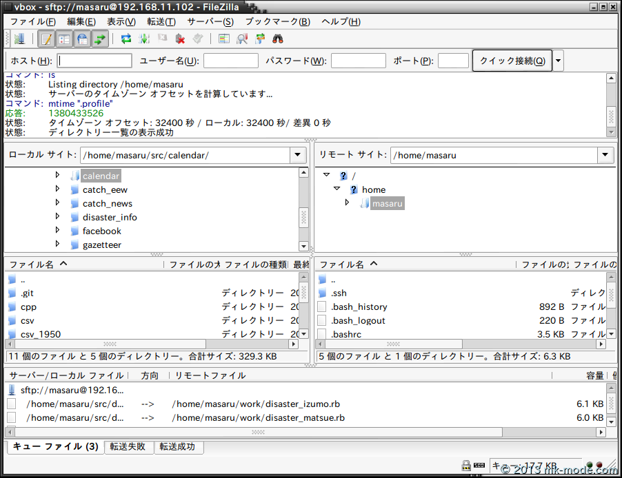 以下は、 FileZilla での設定例である。(最低限これだけで良いはず)