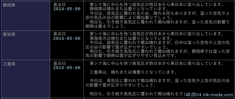 - 気象庁防災情報 XML 取得(その後)! - mk-mode BLOG