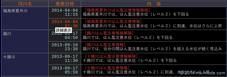 - 気象庁防災情報 XML 取得(その後)! - mk-mode BLOG