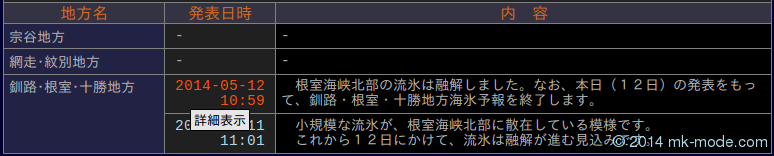 - mk-mode SITE : DB - 海氷予報(気象庁防災情報XML)