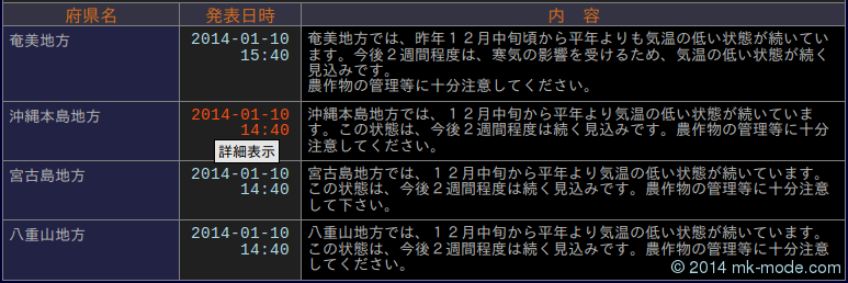- 気象庁防災情報 XML 取得(その後)! - mk-mode BLOG