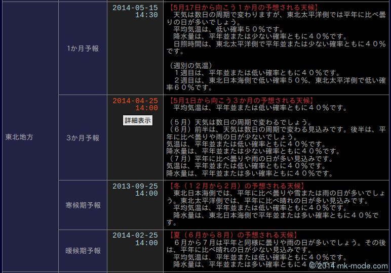 - mk-mode SITE : DB - 季節予報(気象庁防災情報XML)