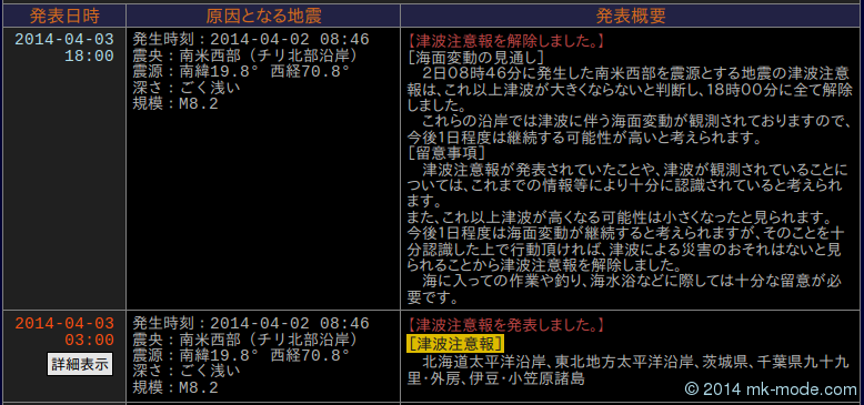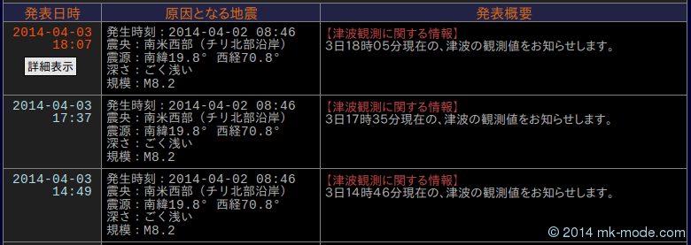 - mk-mode SITE : DB - 津波情報(気象庁防災情報XML)