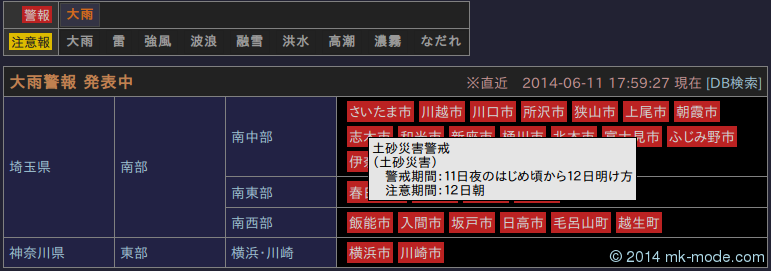 - 気象庁防災情報 XML 取得(その後)! - mk-mode BLOG