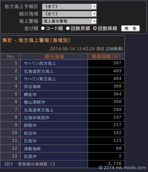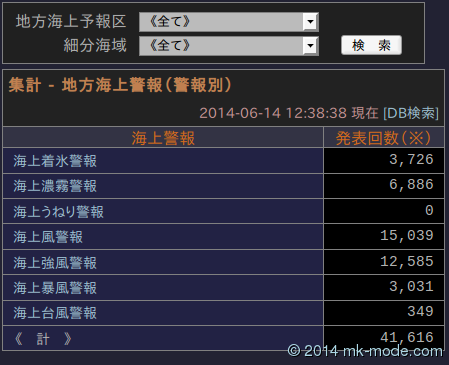 2. 「集計 - 地方海上警報(海域別)」ページ