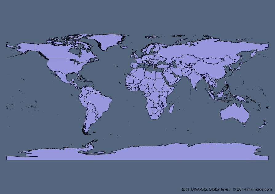 “DIVA-GIS” という地図データを無償で提供しているサイトの Shapefile データを取得して世界地図を表示してみる。