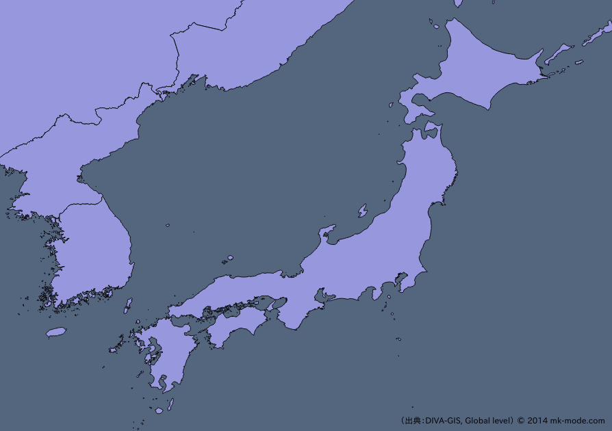 “Global Administrative Areas” という地図データを無償で提供しているサイトの Shapefile データを取得して日本地図を表示してみる。(全世界分として Shapefile が提供されておらず、世界地図を生成するには各国分の Shapefile を結合しなればならないため)