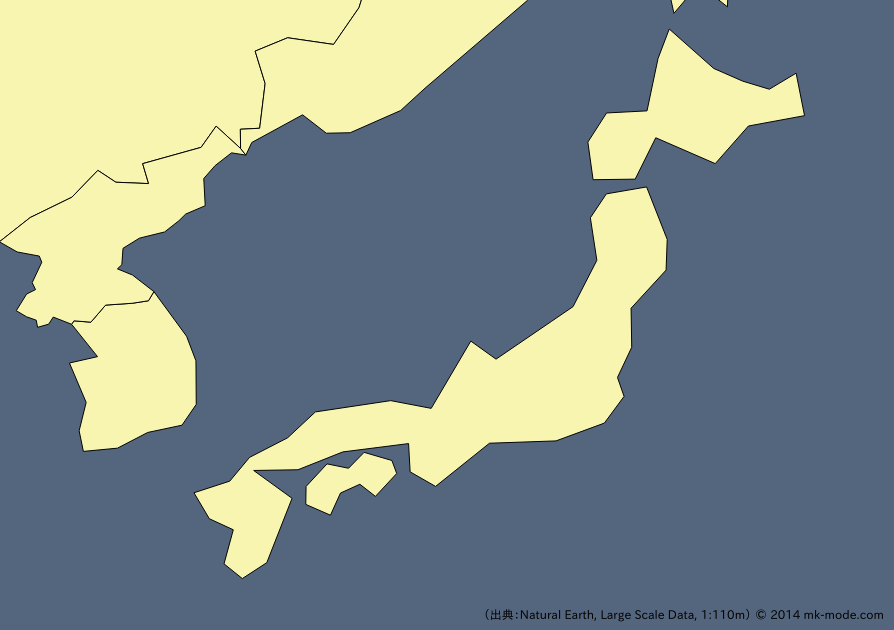 こちらも、Natural Earth の 1/10,000,000 縮尺と同レベルの精度に感じた。