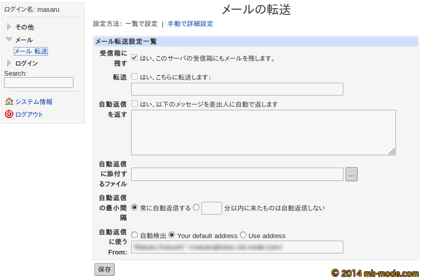 「CentOS 7.0 - Usermin で Vacation 設定」についての記録です。