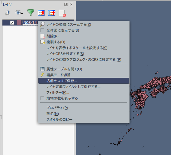 次に、レイヤ名右クリックで「名前を付けて保存」を選択する。