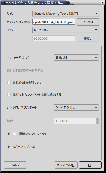 GMT(The Generic Mapping Tools) という地図等を描画するソフトには日本地図の行政区域データが存在しないので、別途 Shapefile を GMT 用の形式に変換して使用する必要があります。