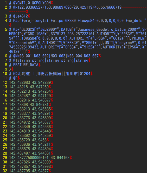 (ちなみに、GMT では > と > で囲まれた部分が1つのポリゴンになる)