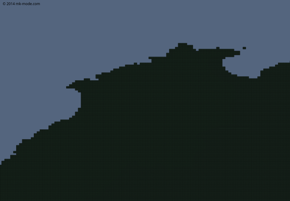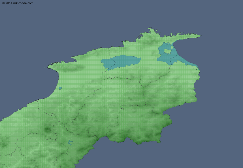 取得した標高・傾斜度データをそのまま描画すると該当の県以外も描画されるので、行政区域データを使用して重なる部分のみ描画するようにする。